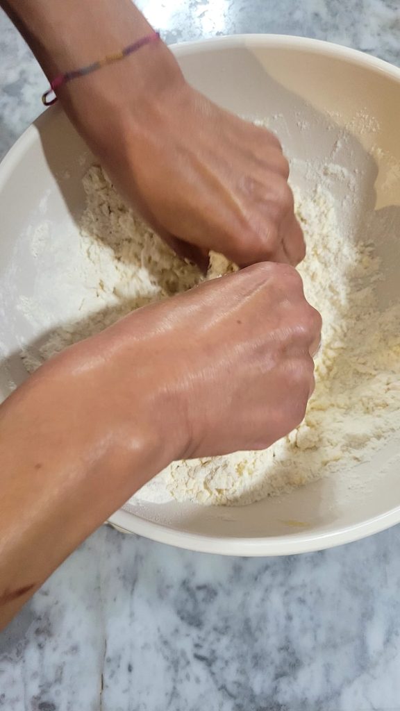 Blijf het mengsel bewerken met je vingertoppen, snel