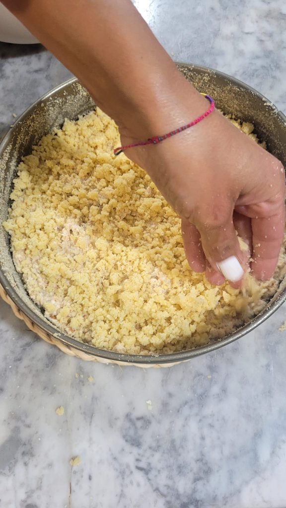 De Sbriciolata Ricotta en Amaretti, gebakken in de Airfryer of in de oven, is heel eenvoudig te bereiden en je hebt geen keukenrobots of mixers nodig, noch deegrollers, je vingers zullen het instrument zijn om het ‘kruimeldeeg’ te maken. De vulling van de Sbriciolata Ricotta en Amaretti is een room op basis van ricotta, suiker, eieren en grof verkruimelde droge amaretti.