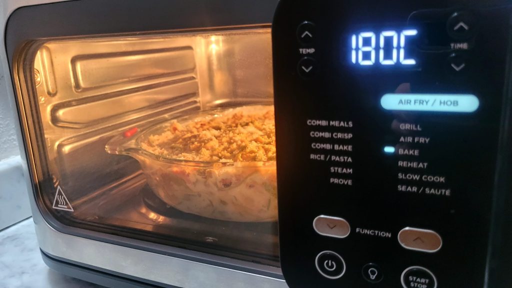 Verwarm de oven voor op 180°C en bak ongeveer 20/25 minuten, tot er een mooie korst op het oppervlak is gevormd, als je wilt, kun je ook de grill inschakelen voor de laatste paar minuten