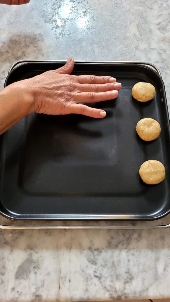 Neem stukjes deeg en vorm balletjes zo groot als een walnoot