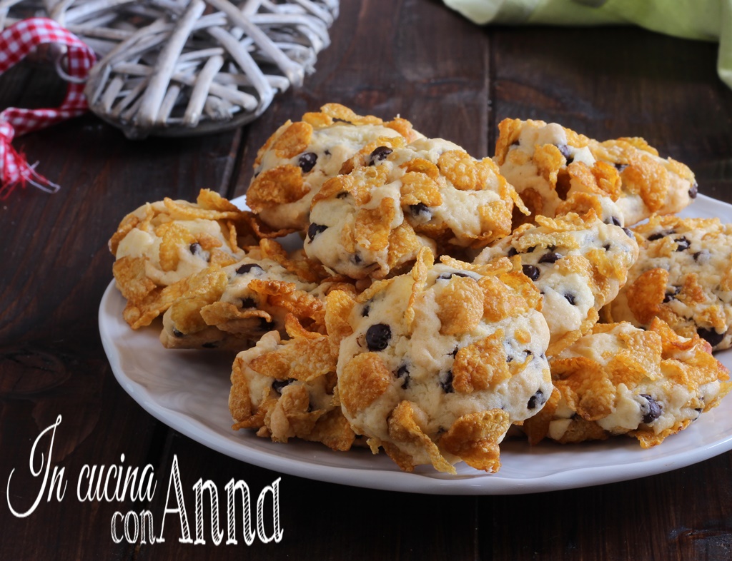 De 5-minuten koekjes met noten en chocolade zijn heerlijke lekkernijen, knapperig door de cornflakes en verrukkelijk door het notenmeel en de chocoladedruppels.