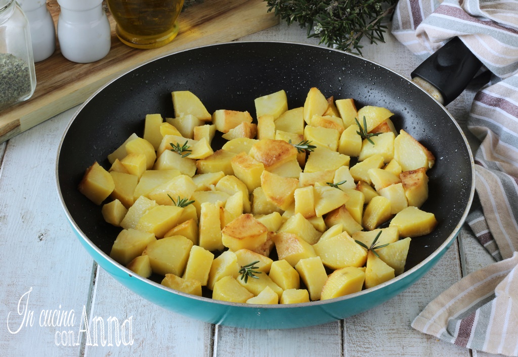 Zodra de aardappelen gaar zijn, voeg je de boter in stukjes toe verspreid hier en daar en laat nog ongeveer 5 minuten koken terwijl je de pan vaak schudt om alle aardappelen met de boter op smaak te brengen en ze gelijkmatig goudbruin te maken.