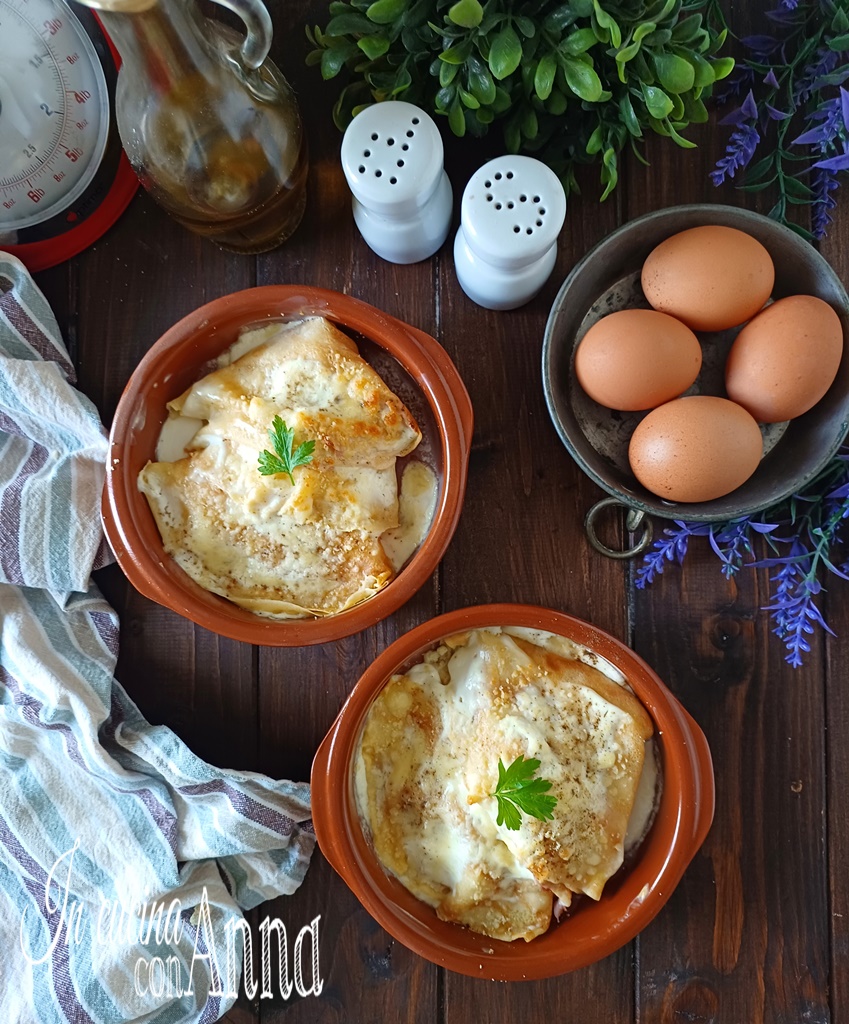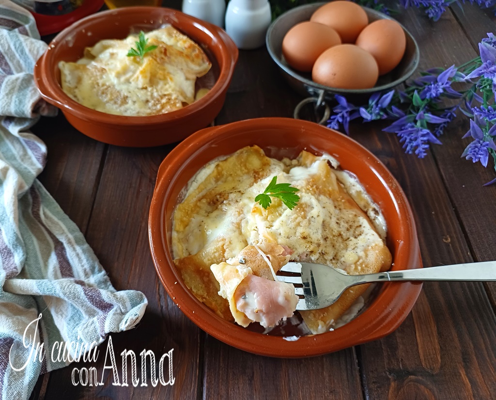 De crespelle alla valdostana zijn uniek lekker, romig en smeltend, met hun vulling van gekookte ham en fontina en de dekking van bechamelsaus zullen ze iedereen bij de eerste hap veroveren, ze zijn ook geweldig als je gasten hebt 🙂