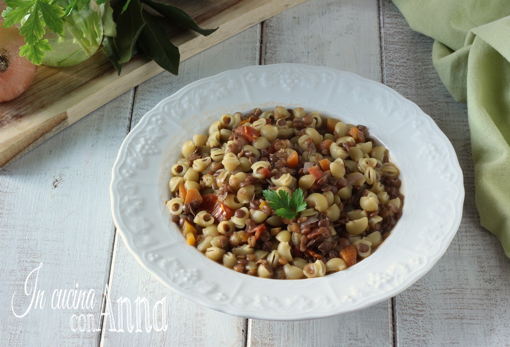 Pasta met linzen is een typisch gerecht voor koude en herfstachtige dagen, bij ons thuis mag het op 2 december niet ontbreken, mama verwarmt altijd veel zampone linzen en die worden samen met de bouillon de volgende dag gebruikt voor een smakelijke pasta met linzen.