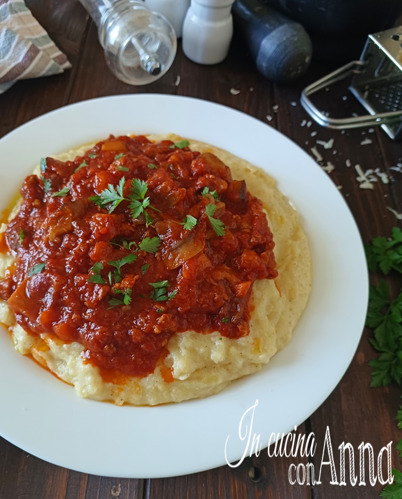 De Polenta met worst en paddenstoelen saus is een gerecht van ongekende heerlijkheid, bovendien is het eenvoudig te bereiden, voedzaam en zeer smakelijk, een perfect eenpansgerecht om onszelf te verwennen op koude winterdagen.