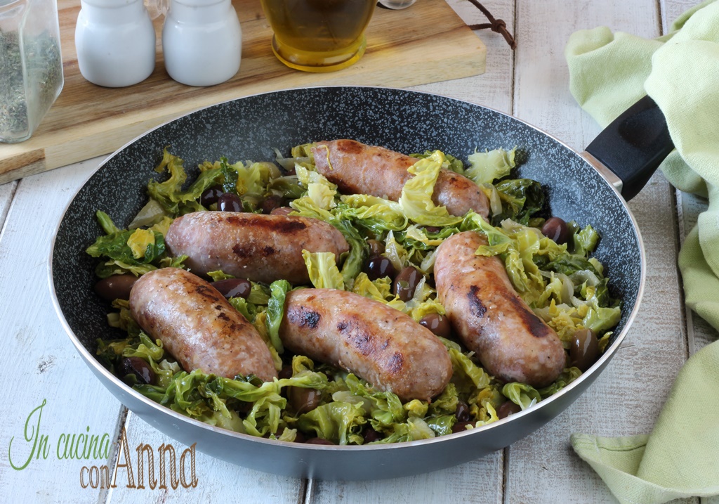 Voeg op dit punt de worsten weer toe, pas het zout aan, voeg een snufje peper toe en voltooi het koken op laag vuur en afgedekt met het deksel.