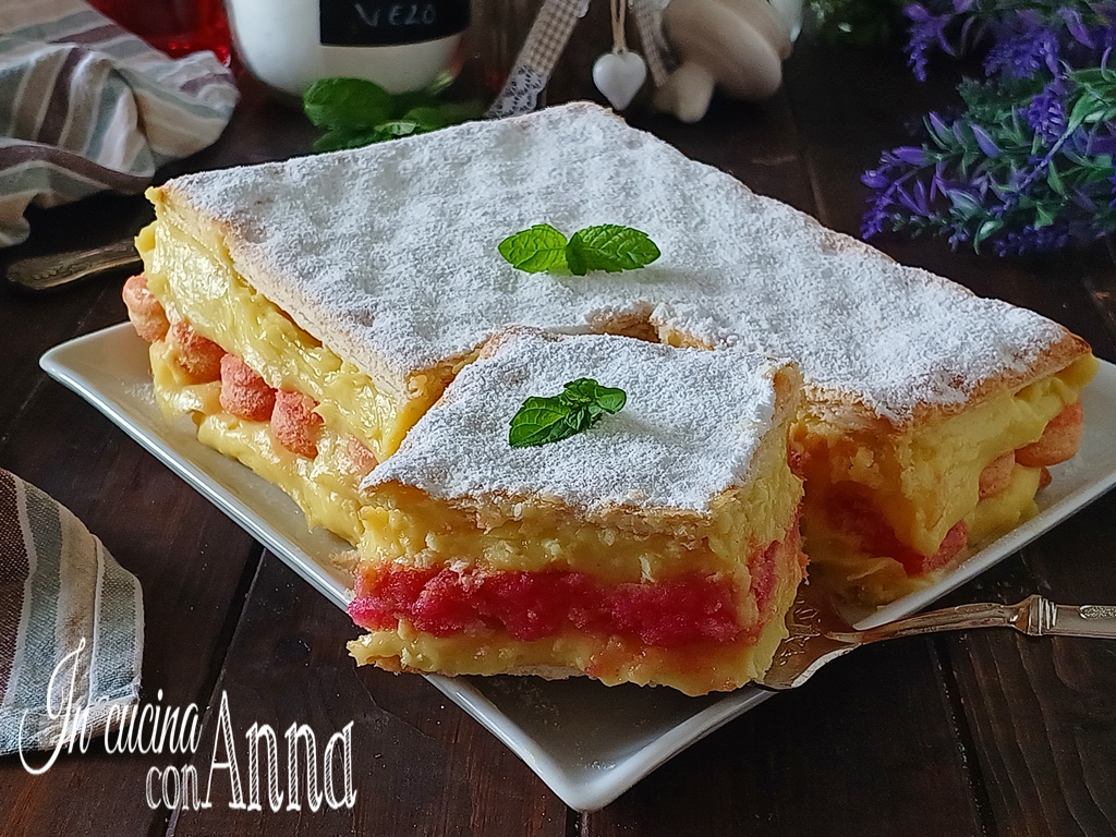 De snelle diplomaat is een overheerlijke taart perfect voor elke gelegenheid, een van die banketbakkerij taarten die in deze eenvoudige en snelle versie in een mum van tijd indruk maakt. Stel je een knapperig bladerdeeg voor, veel heerlijke banketbakkersroom en een laag alchermes-geweekte lange vingers, alles samen creëert deze taart die je bij de eerste hap zal veroveren 🙂 Probeer het en je zult de heerlijkheid ontdekken.