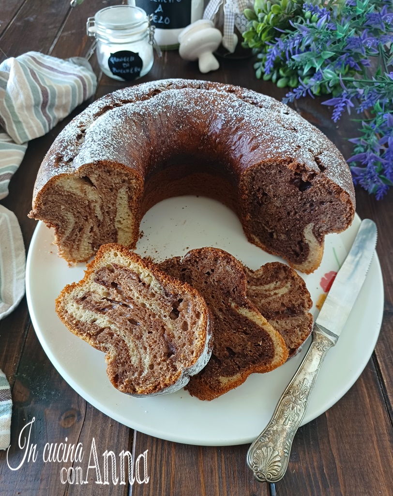 De zachte yoghurt tulband met chocoladestrepen is een van die voorraadkastcakes die iedereen veroveren met hun smaak, een tulband die zowel hoog als superzacht is met veel yoghurt en een heerlijke cacao-strepen, heeft een vochtige textuur en is heerlijk, bovendien is het heel snel te bereiden, alleen een elektrische mixer is nodig en binnen 10 minuten zit het al in de oven, je krijgt een zeer pure en smakelijke yoghurt tulband die perfect is voor het ontbijt en niet alleen voor het hele gezin 🙂
