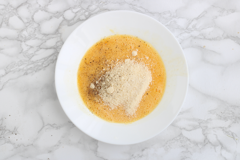 Klop de eieren goed in een bord en voeg de kaas toe.