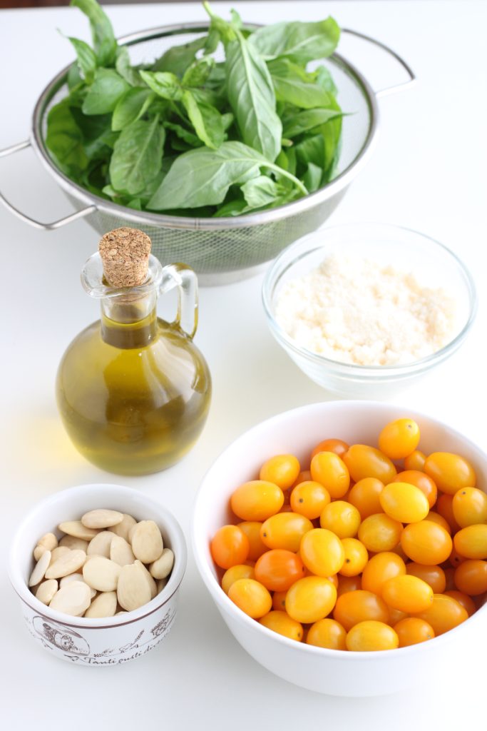 Recept pesto met gele tomaten, basilicum en amandelen