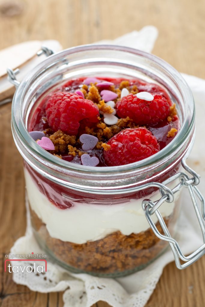 Bewaring: de Valentijn mini cheesecakes kunnen in de koelkast worden bewaard, afgedekt met plasticfolie of afgesloten in hun pot met deksel, maximaal 2 dagen.