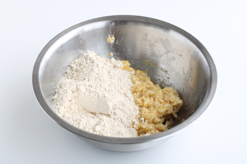 Voeg het kastanjemeel toe aan het mengsel.
