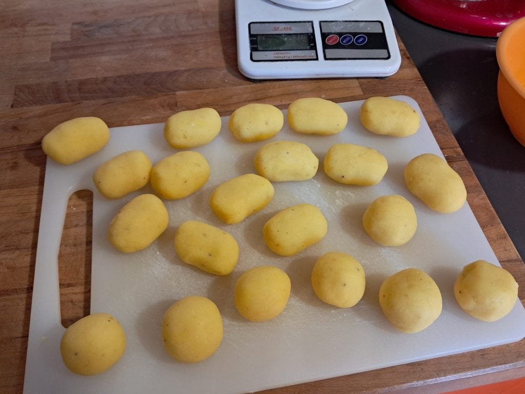 • Maak nu balletjes van het mengsel en geef ze vervolgens een licht ovale vorm.