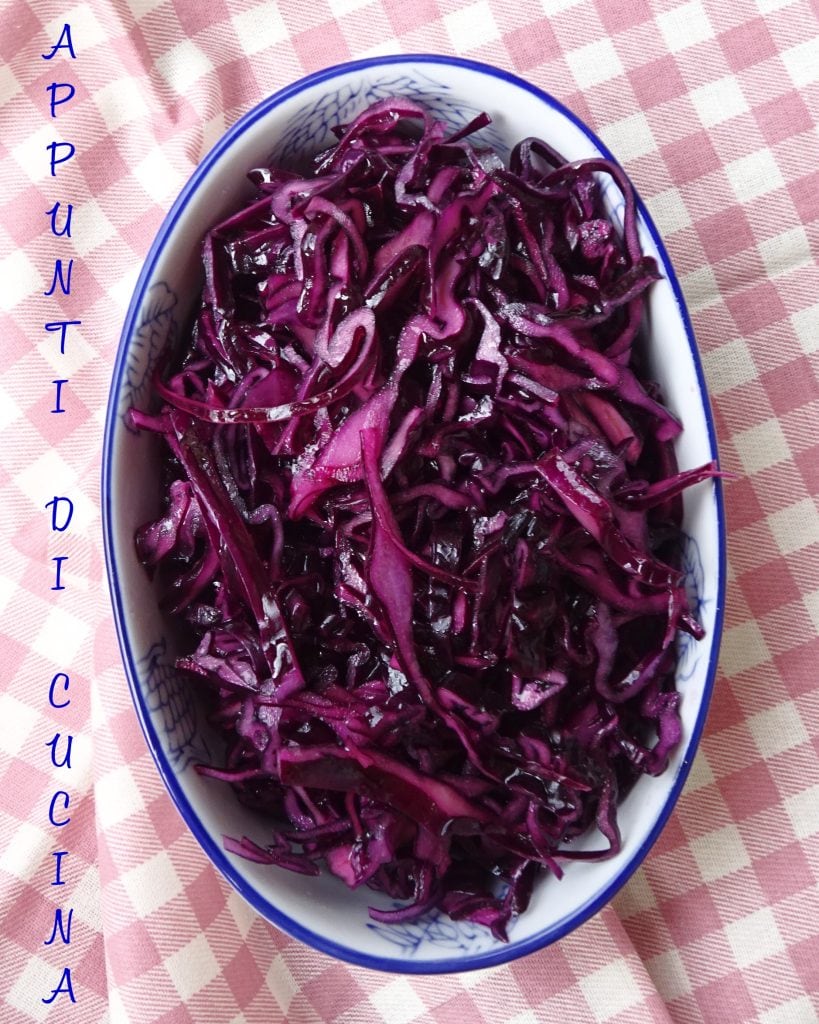 Gemarineerde rode kool met zout en suiker, een bijgerecht met een bijzondere maar delicate smaak. Deze marinatie maakt de kool niet alleen zachter, maar ook beter verteerbaar. Het is een veelzijdig bijgerecht dat je kunt serveren met de gerechten die je het lekkerst vindt en daarnaast kun je het gebruiken om je gemengde salades te verrijken.