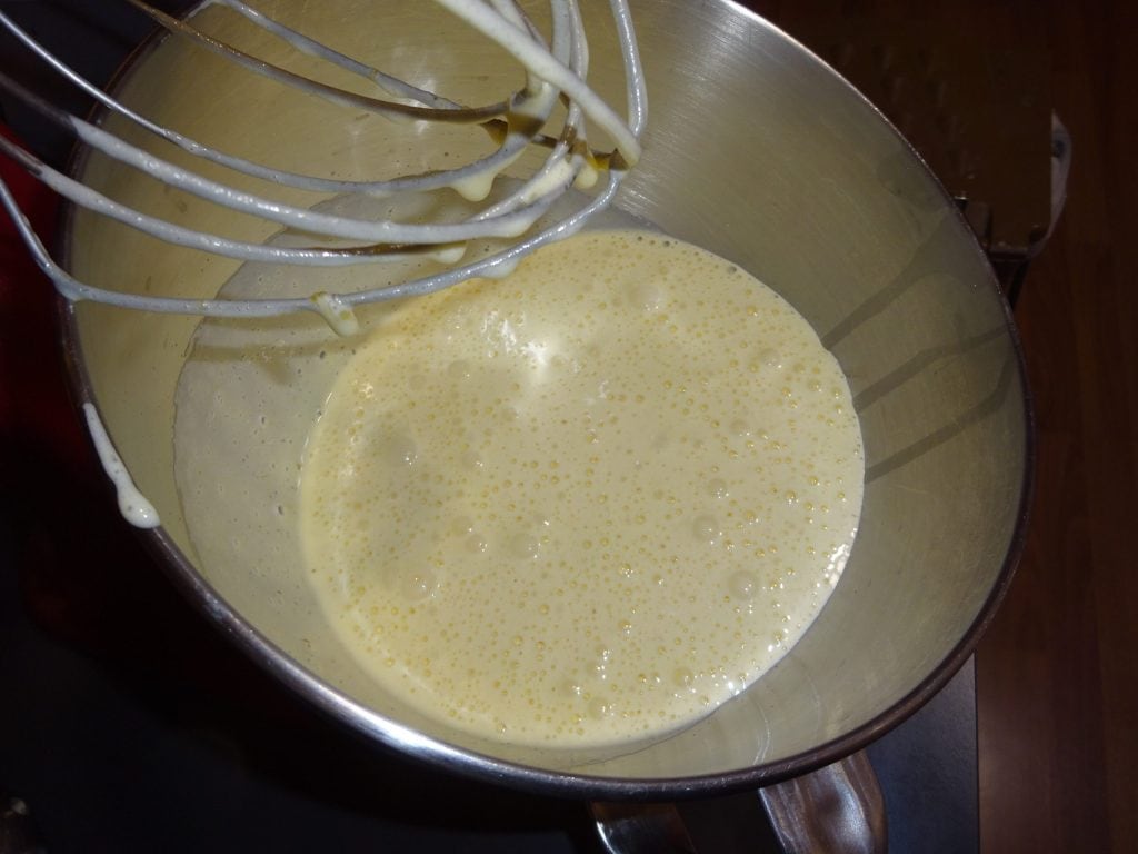 • Start de keukenmachine op middelhoge snelheid en werk het mengsel tot het mooi schuimig is. Dit duurt ongeveer 5 minuten.