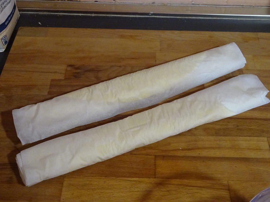 Haal eerst de rollen bladerdeeg uit de koelkast en leg ze opzij.