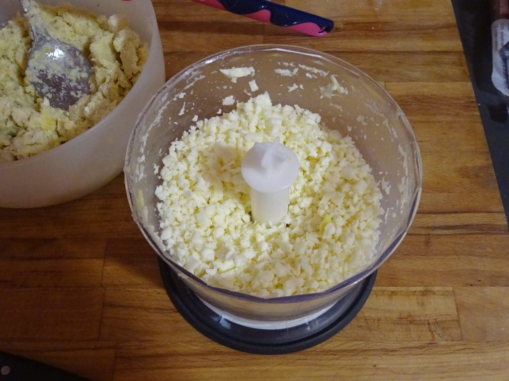 Zodra deze gemalen is, voeg deze toe aan het artisjok- en grana-kaasmengsel. Meng goed om alles te combineren.