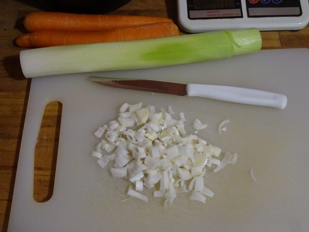 Maak de prei schoon en snijd deze in kleine stukjes.