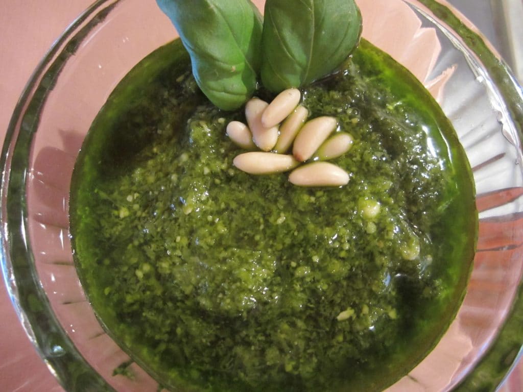In dit geval heb ik de pesto zelf gemaakt, maar je kunt gerust de kant-en-klare versie gebruiken, met of zonder knoflook.