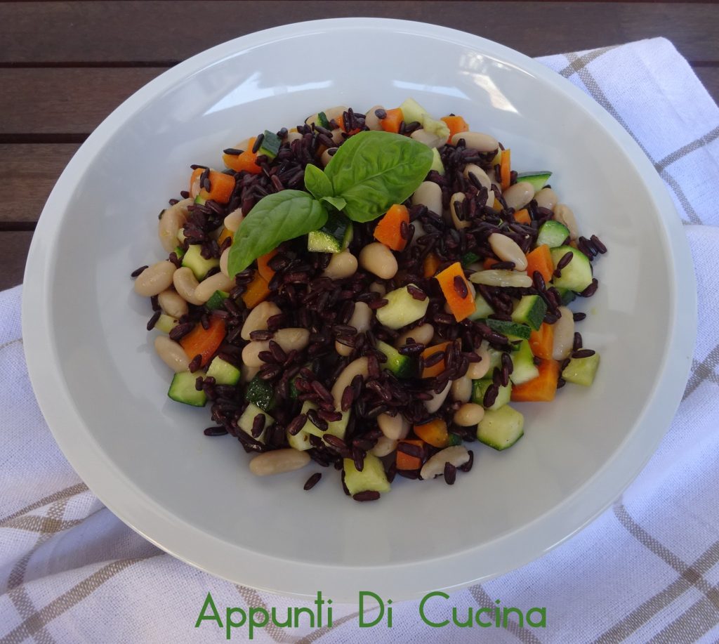 Venere rijst in salade met groenten, een rijk en compleet gerecht ideaal om mee te nemen voor een uitstapje of picknick. Recept met gemakkelijke uitvoering, de kooktijd van Venere rijst is iets langer dan gewone rijst maar het is de moeite waard te proberen.