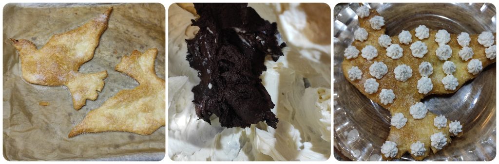 Eerste plak bladerdeeg: Snijd met een scherp mes de eerste twee vormen van een colomba.