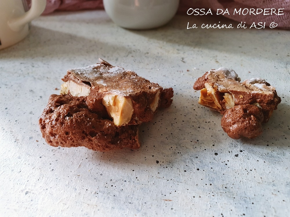 Deze koekjes met gedroogd fruit vereisen zeer weinig ingrediënten (poedersuiker, gepelde en geroosterde hazelnoten, eiwit en ook een beetje cacao in poedervorm), maar hebben wat rusttijd nodig, van minimaal een uur tot een hele dag.