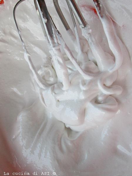 In een kom begin je de eiwitten stijf te kloppen en voeg je geleidelijk de suiker toe, zodat je een glanzende, stevige meringue krijgt.