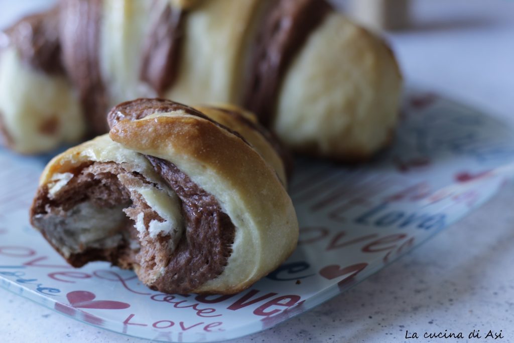 Maar deze WERVELENDE croissants in twee kleuren hebben een probleem… ze zijn niet erg zoet en moeten voor mij vergezeld gaan van een flinke lepel gele of chocoladeroom!