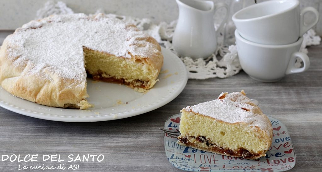Laat na het bakken afkoelen en voordat je het op tafel zet, bestrooi de Dolce del Santo voor 13 juni met poedersuiker.