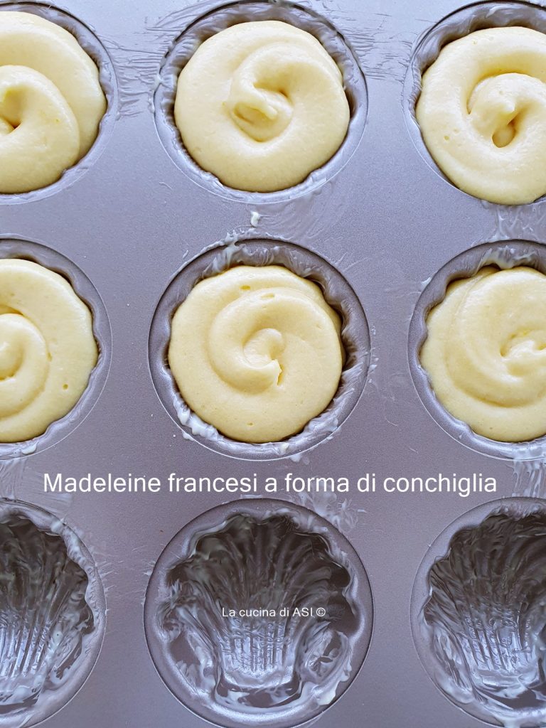 8) Nu ZET IK de vorm gevuld met het originele madeleine beslag terug in de vriezer voor nog eens 10 minuten en dan eindelijk bak ik het door de temperatuur te verlagen zodra ik de bakplaat in de oven heb gezet, naar 180°C en de baktijd 10/15 minuten voort te zetten, maar let goed op!