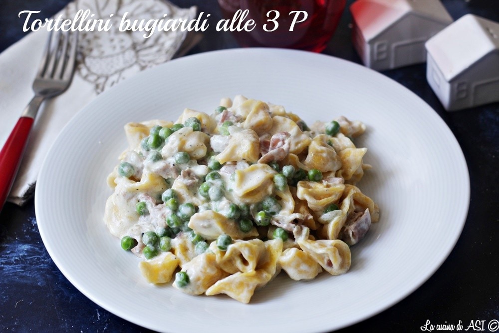 En vandaag, na lange tijd, ben ik terug met het maken van verse pasta en heb ik de LEUGENACHTIGE TORTELLINI MET DE 3 P’s bereid, namelijk room, ham en erwten!