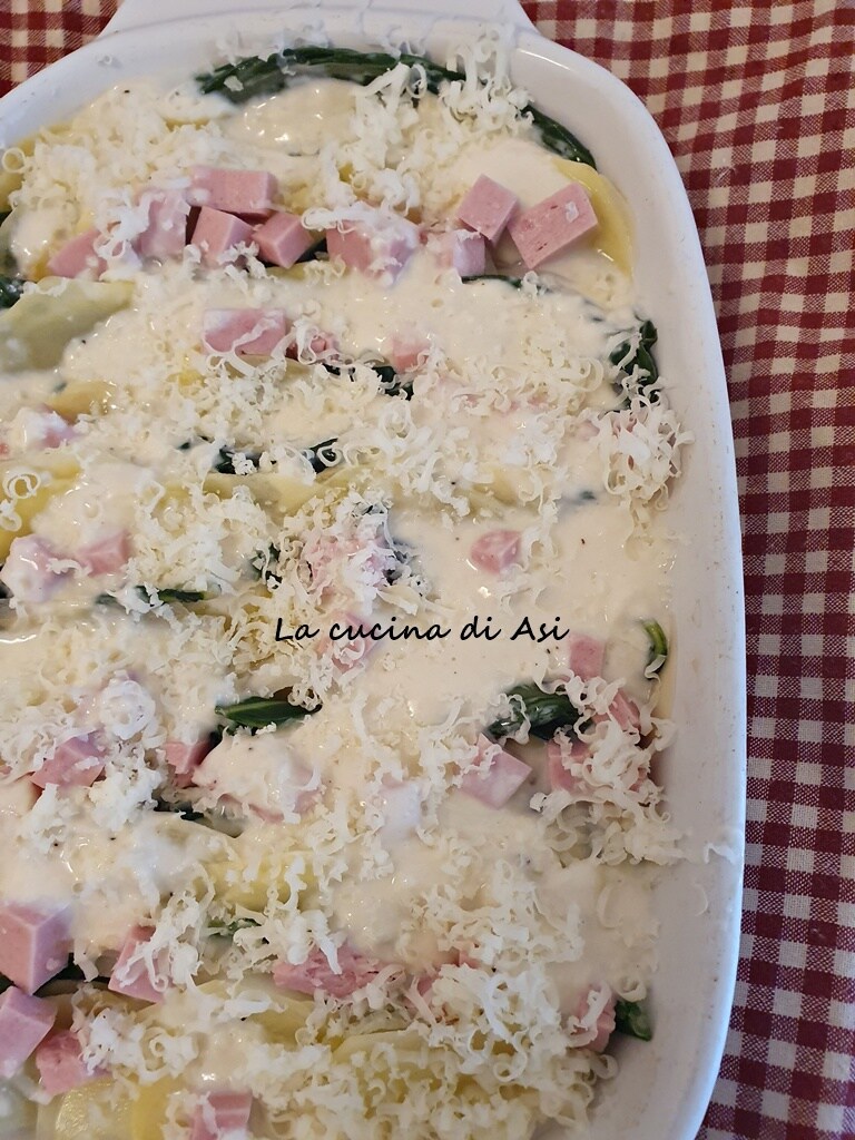 De ovenschotel met snijbiet en aardappelen is een rustiek en romig recept, perfect om te serveren als een stevig bijgerecht of als een volledige hoofdmaaltijd. De zachte en delicate snijbiet wordt gecombineerd met aardappelen en bechamel in een smeuïge en onweerstaanbare gratin. Om het nog smaakvoller te maken zijn er blokjes gekookte ham aan toegevoegd, die smaak en kleur geven aan elke hap. Makkelijk te maken en echt lekker, deze ovenschotel is het perfecte idee voor een familiediner of om het feestmenu te verrijken.