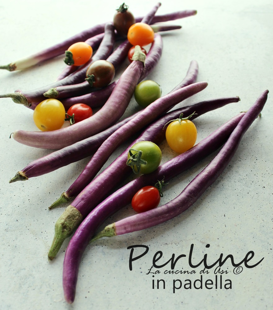 Ze zijn afkomstig uit de provincie Ragusa, zijn niet bitter, compact en nemen minder olie op als je ze frituurt. Ik heb er echter voor gekozen om de parel-aubergines in de pan te maken, simpelweg door een mix van kleurrijke tomaten (ook gekocht bij Esselunga), knoflook en weinig meer toe te voegen.