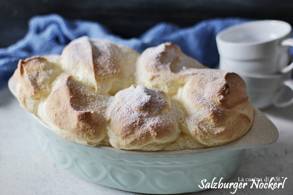 Een zacht en luchtig dessert zoals dit kan je niet anders dan bij de eerste hap veroveren! De Salzburger Nockerl is een dessert om direct uit de oven te delen met een wolk van poedersuiker en de crema inglese zonder bloem voor een perfect einde!