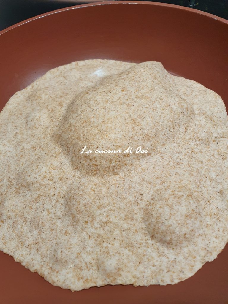 Over pannen gesproken, de beste zou de gietijzeren pan zijn of de piadina Romagnola-tekst, maar ik heb de laatste gebroken en koos voor een klassieke maar zware pan die ik in de keuken heb!