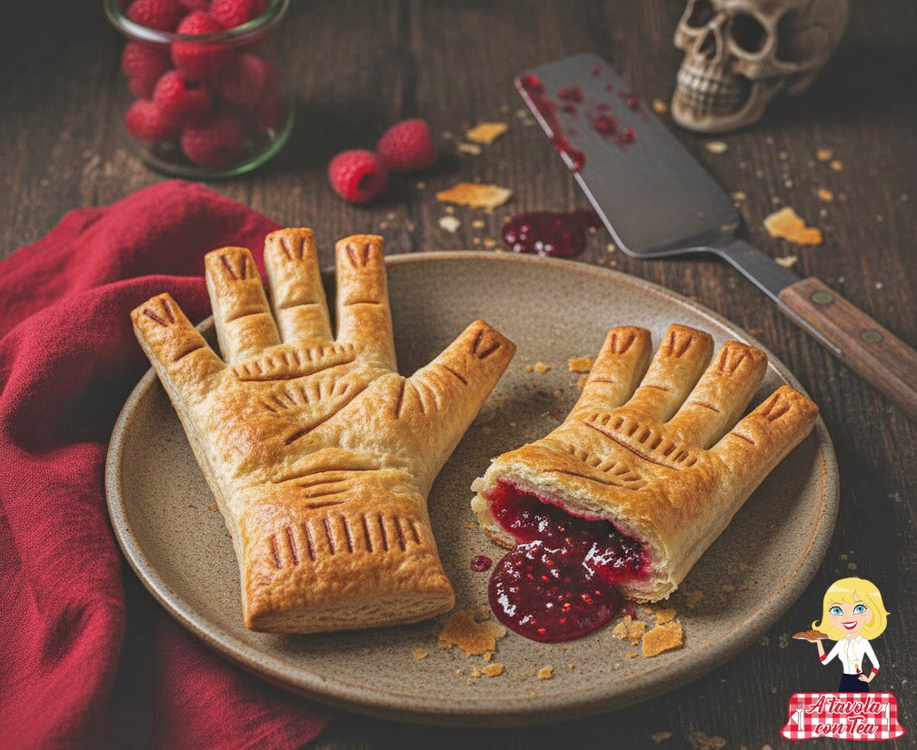 Hartige Versie (Zombie Bladerdeeg Hand): Vervang de jam door 100 g tomatenpuree (ingedikt op het vuur) en 50 g romige kaas (zoals geraspte provolone of goed uitgelekte mozzarella). Voeg oregano en een snufje zout toe aan de vulling.