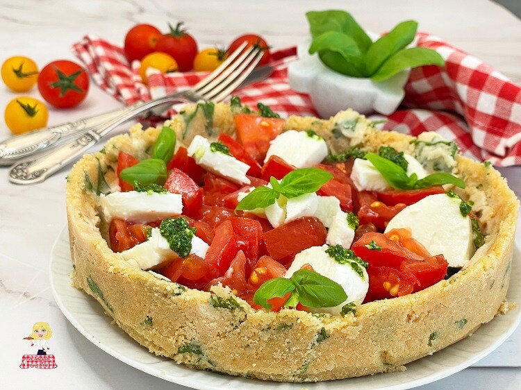Het eindresultaat zal een perfecte Caprese Hartige Taart zijn voor de zomer, zonder te bakken, licht maar tegelijkertijd smaakvol, kleurrijk en indrukwekkend.