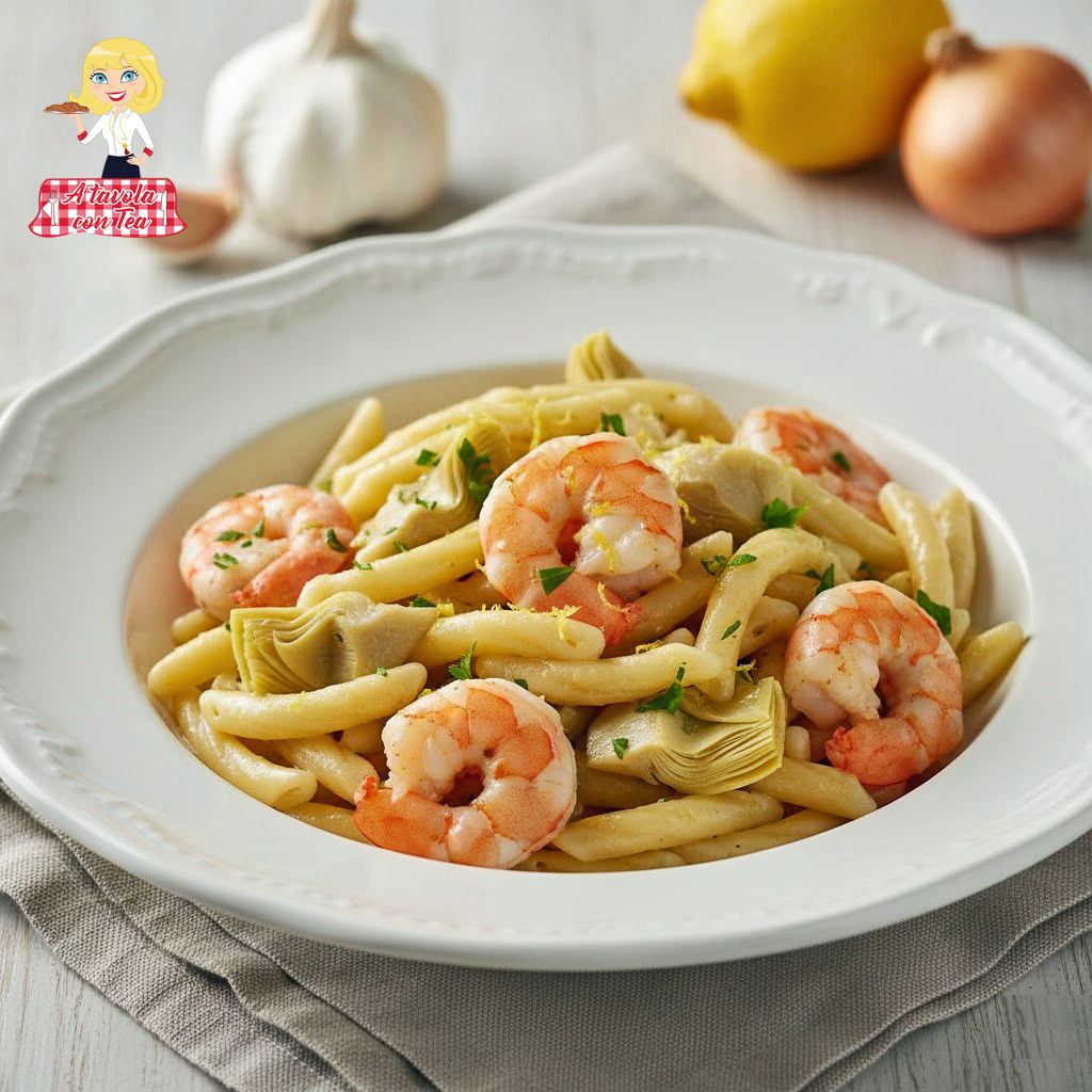 De Caserecce met artisjokken en garnalen zijn de perfecte balans tussen de frisheid van zee- en landingrediënten en het gemak van een eerste gerecht dat geen uren in de keuken vereist.