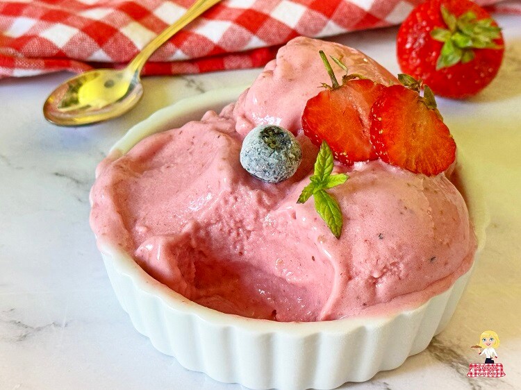 In het recept van vandaag heb ik AARDBEIENIJS gemaakt, maar met hetzelfde recept kun je alle fruitijsjes maken die je wilt (je vindt in de Notities onderaan het recept suggesties voor andere smaken, zelfs gemengd) zoals bosbessen en bramen, banaan en mango, perzik en abrikoos, enzovoorts.