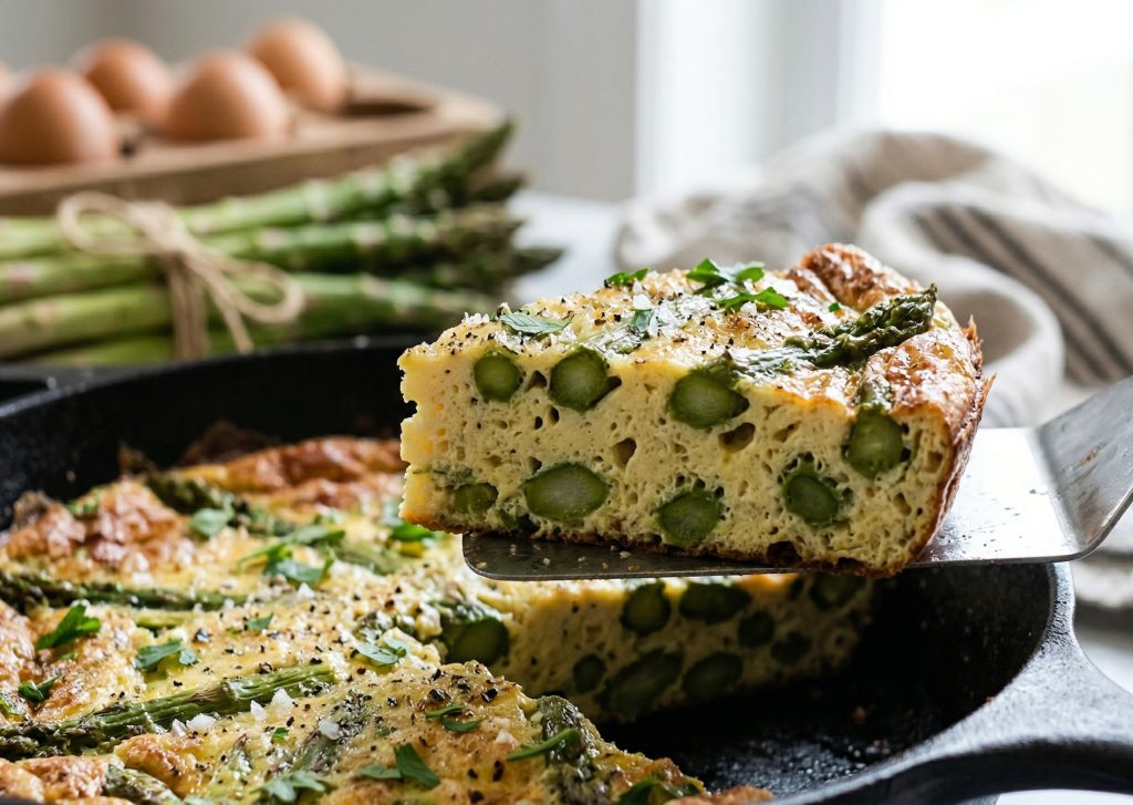 Hoe je een hoge en zachte aspergefrittata in de pan maakt zonder fouten