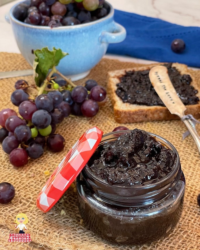 De Aardbei Druiven Jam is een geurige, zoete en lichtzure herfstconserve die wordt gemaakt van Aardbei Druiven, ook bekend als Amerikaanse Druiven.