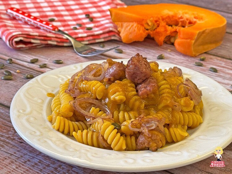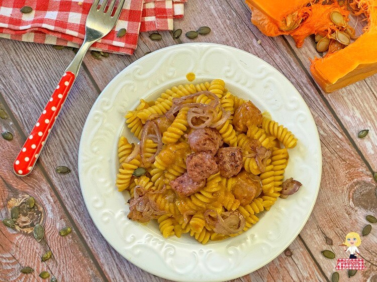 Pasta met Pompoen en Worst is een snel en smakelijk hoofdgerecht dat naar de herfst ruikt.