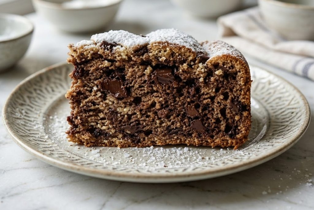Het resultaat is een hoge taart, donker als een brownie maar zacht als een wolk, perfect voor wie weinig tijd heeft maar niet wil inleveren op een huisgemaakt dessert dat lijkt alsof het uit een chocoladeboetiek komt.