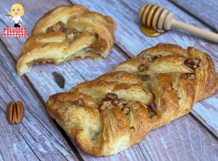 Ik heb het over de vlechtjes van bladerdeeg met pecannoten en ahornsiroop.