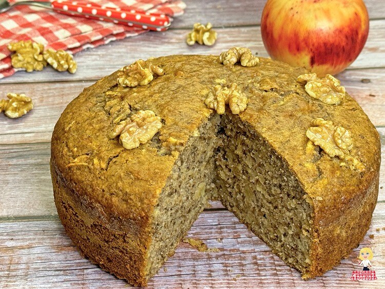 Een traditionele zachte en licht vochtige TAART met APPELEN en WALNOTEN, zonder boter, klaar in een paar minuten, de klassieke voorraadkastcake perfect voor ontbijt of een gezonde snack.
