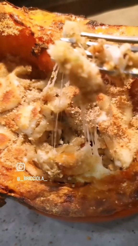 De gevulde pompoen uit de oven is een complete en gemakkelijke, spectaculaire en perfecte herfstgerecht.
