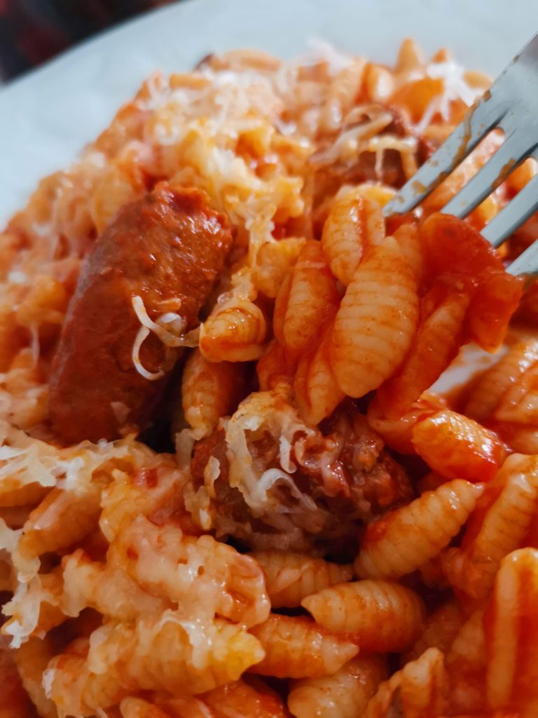Zoals ik in de inleiding al zei, heb ik geen Sardijnse worst gebruikt, maar geloof me, het was nog steeds heerlijk.