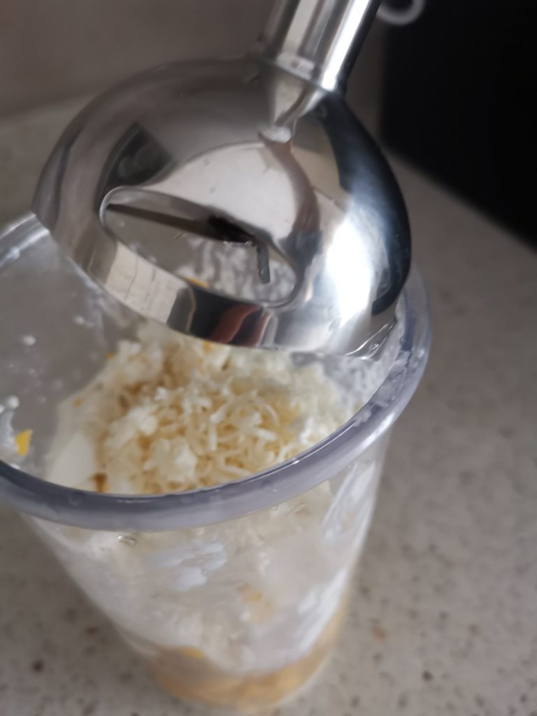 • Blender de ingrediënten tot een zachte en gladde crème. Als het te dik is, voeg dan nog een beetje melk toe.