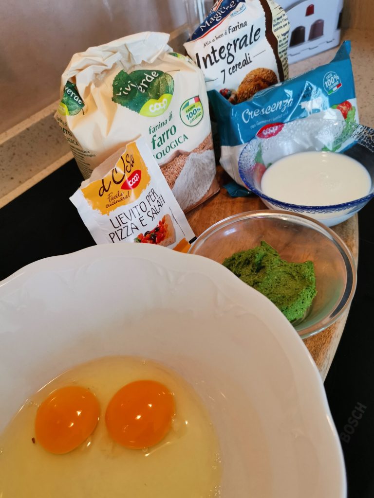 Ik geef je alleen deze informatie. Ik heb 180g speltmeel en 40g volkoren gebruikt, omdat ik het leuk vind om de meelsoorten te mengen, je kunt doen zoals ik, of alles spelt, of als je bloem type 0 gebruikt, kan het zijn dat je in plaats van 220g iets meer nodig hebt, omdat volkoren dikker blijft en je er minder van nodig hebt. Dus met type 0 gebruik je 230/240g. Het deeg moet stevig zijn, niet vloeibaar.