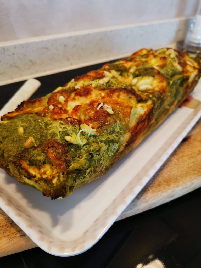 Voilà, klaar, geurig, smakelijk en volgens mij ook leuk om op tafel te presenteren, in aanwezigheid van vrienden of familie. Wij vonden deze hartige cake met pesto erg lekker, je neemt een stukje van mijn mooie Genua in je mond. Zoals ik in het begin schreef, hebben wij het zo genoten, maar met goede kaas of vleeswaren denk ik niet dat het zal misstaan.